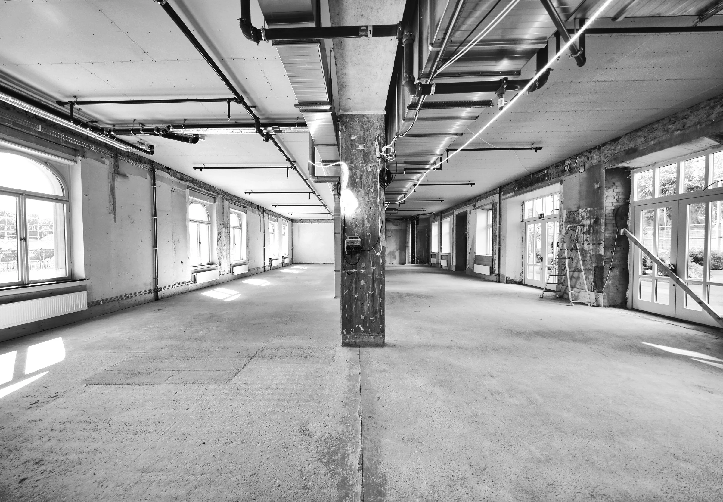 Located in the old gasworks (Stockholms Gasverk) from the early 1900s, Doubble Space spans 460 square meters of industrial architecture and historical contrasts. Raw concrete, an open layout, and high ceilings define the main hall, with street-facing windows letting in natural light from early morning to late afternoon.